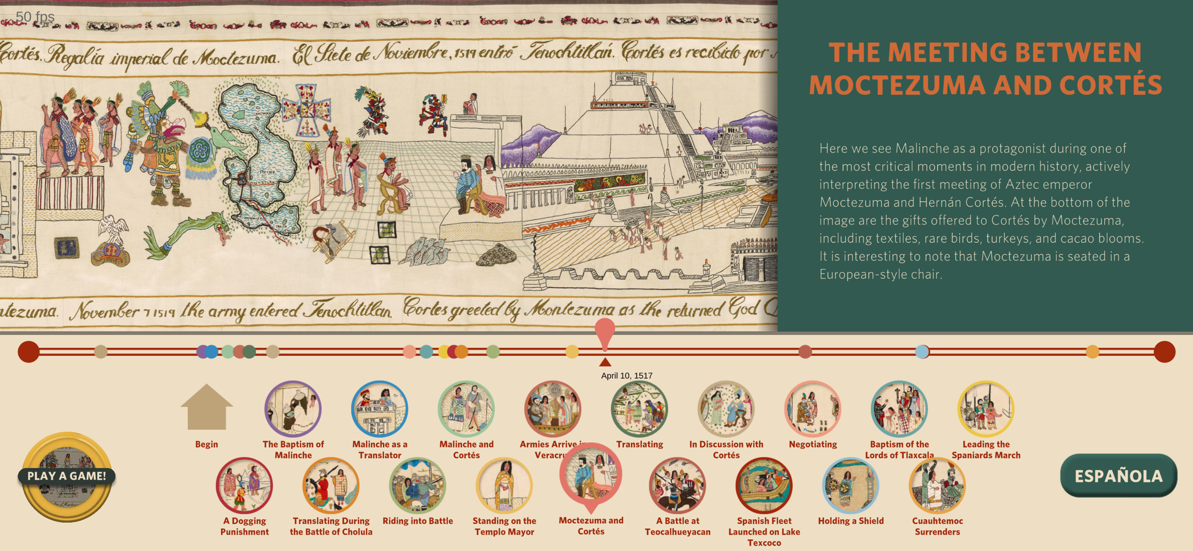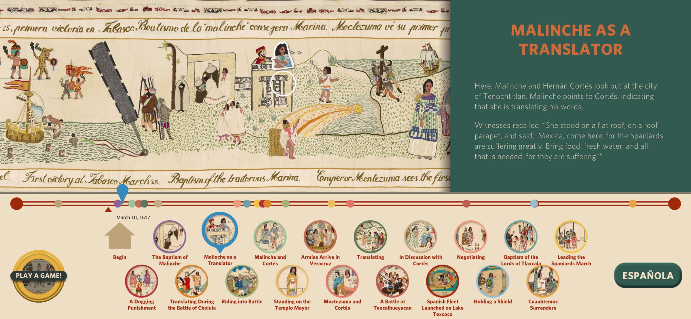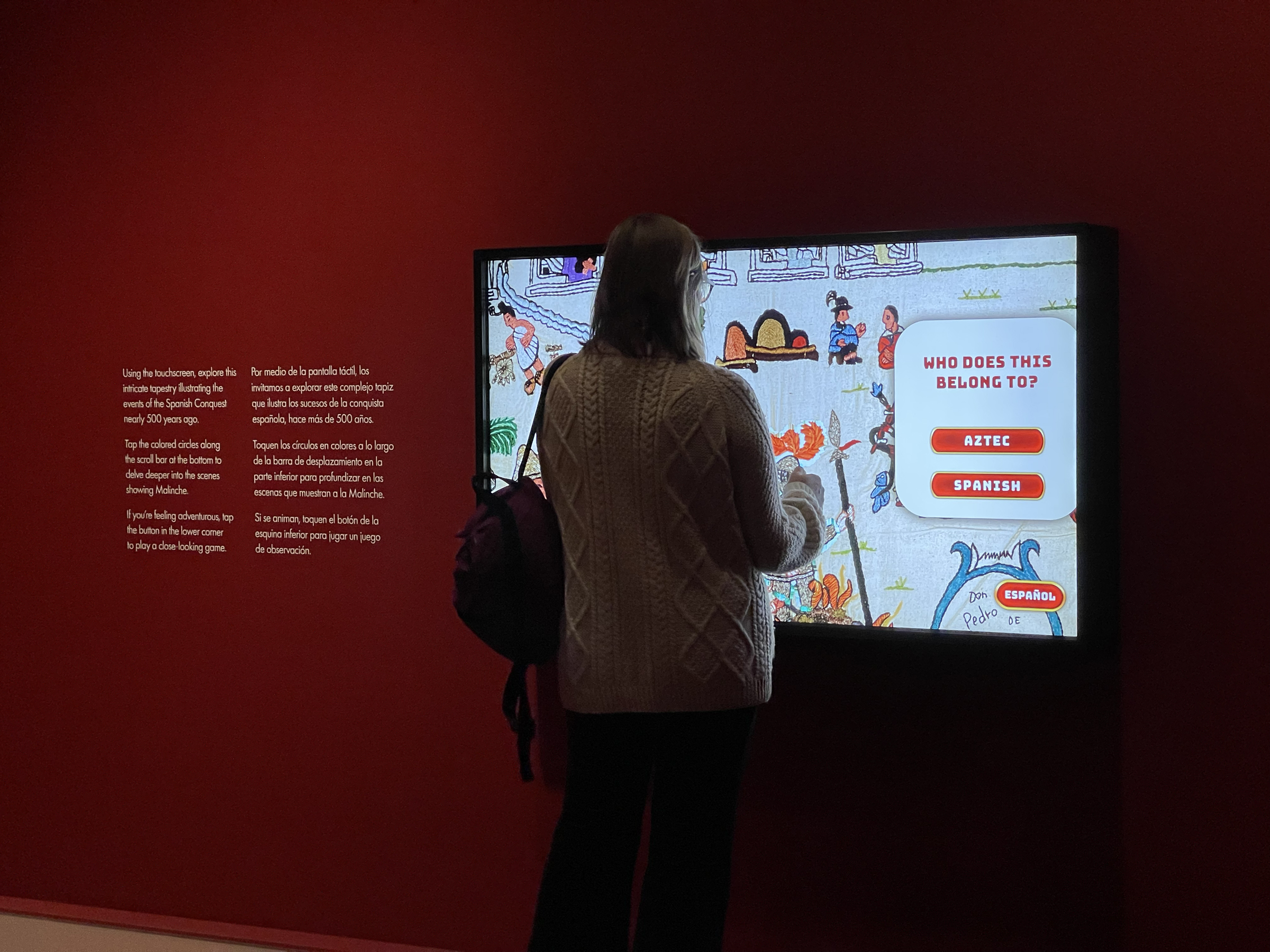 The application was designed for the Denver Art Museums Traitor, Survivor, Icon – The Legacy of La Malinche exhibition and installed in the gallery as a touch screen. The original tapestry can only be displayed in a small section and was located nearby. The touch screen allowed visitors to explore the entirety of the tapestry.