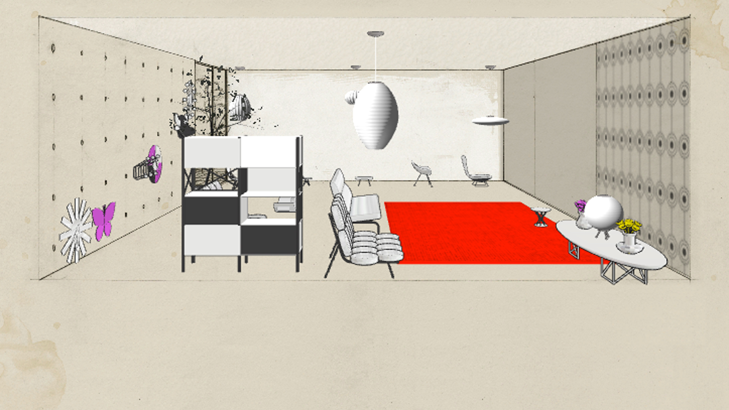This project required extensive programming, 3D modeling, testing and user experience (UX) research. CU Research assistant Cydni Phan provided UX research and testing, as well as lettering and interface design work. Early on it was decided that a sketch style was appropriate and we were inspired by the drawings of Ray Eames and Eileen J. Aureli’s watercolor for the Monsanto House of the Future.